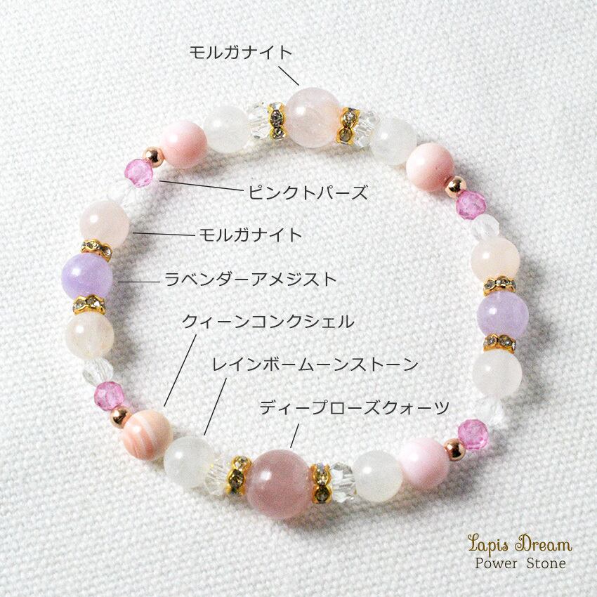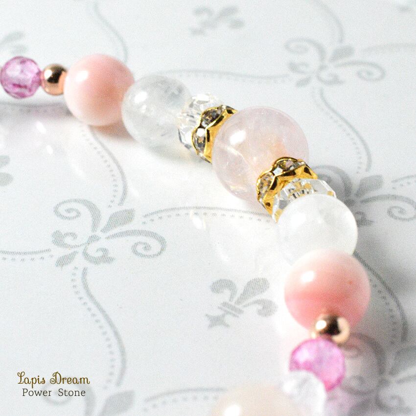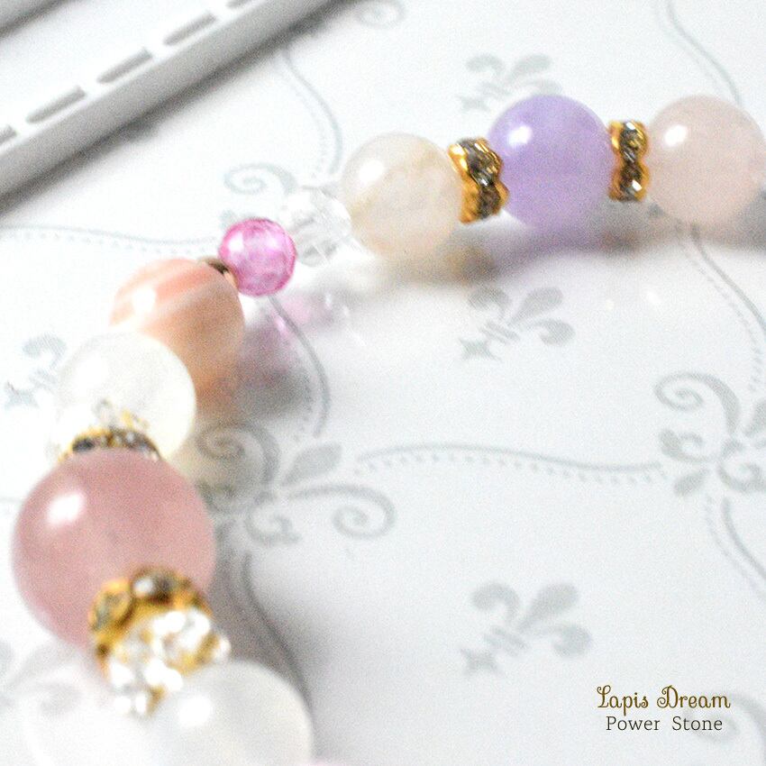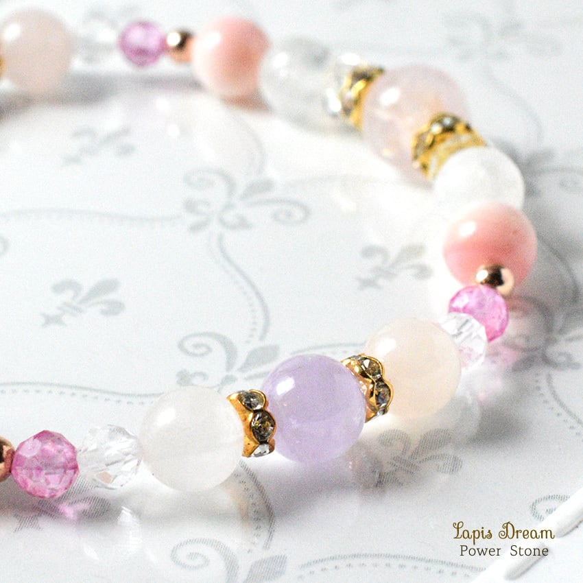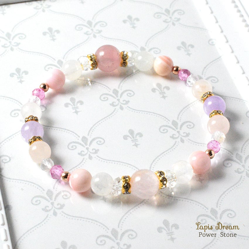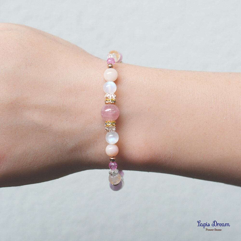 ふんわりとしたピンクの輝きが、心をやさしく包み込むパワーストーン ブレスレットです。