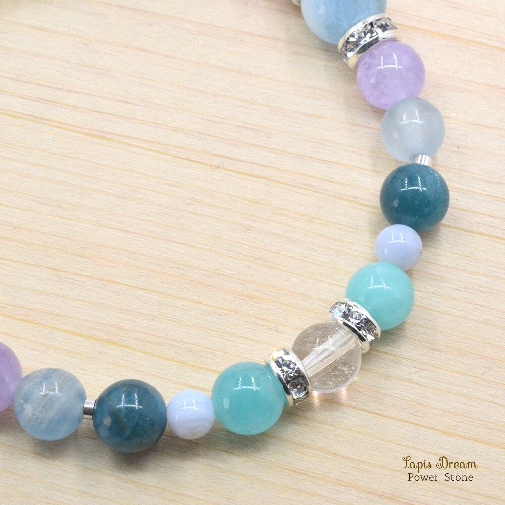 心を晴れやかにして、対人関係を円滑にするお守り | アクアマリン、アパタイトのパワーストーン ブレスレット