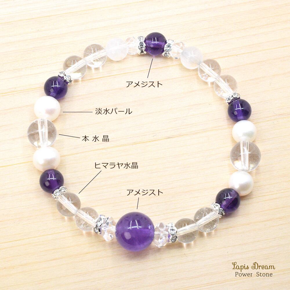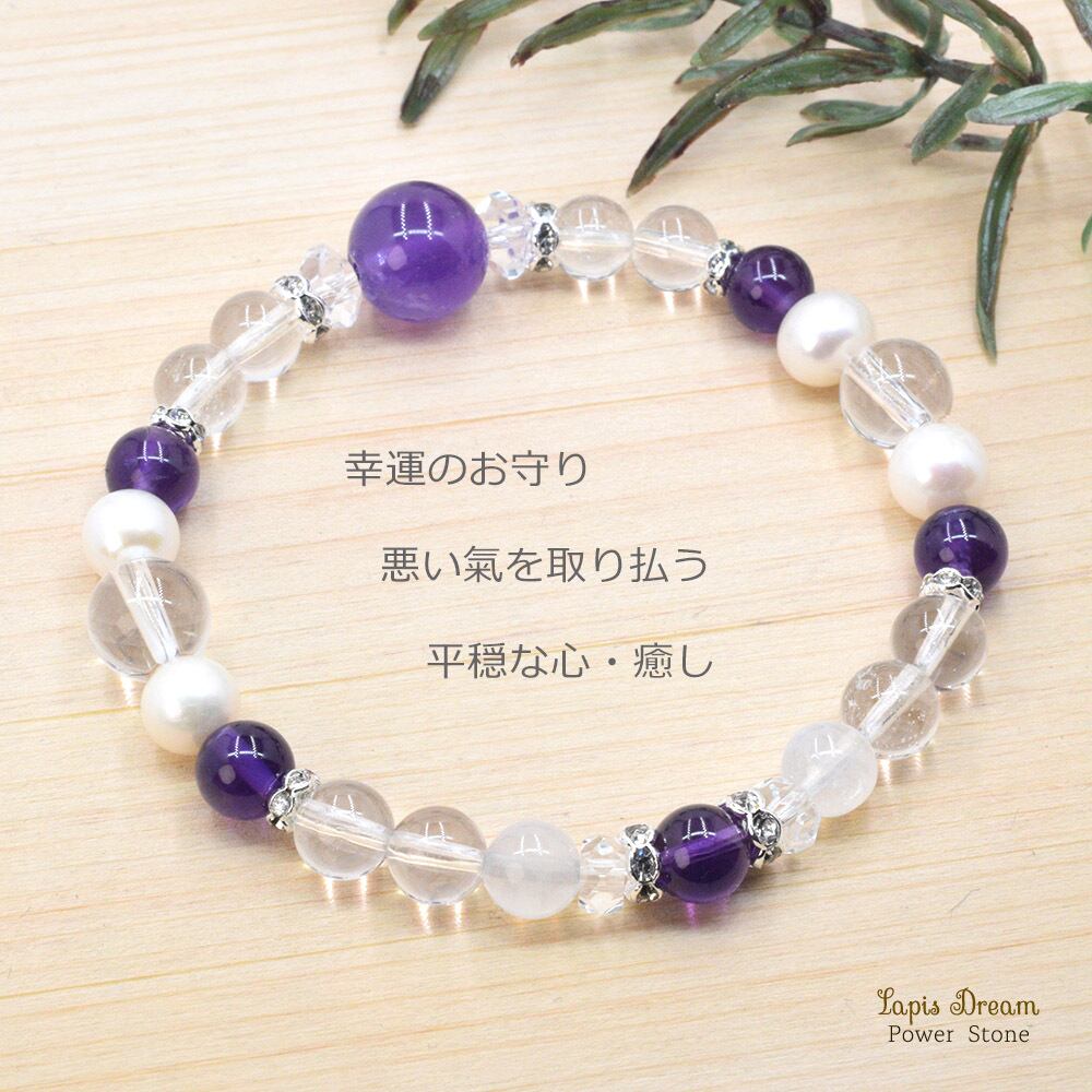 ネガティブな感情を取り払い、運気を上昇させるお守り | アメジスト、ヒマラヤ水晶のパワーストーン ブレスレット