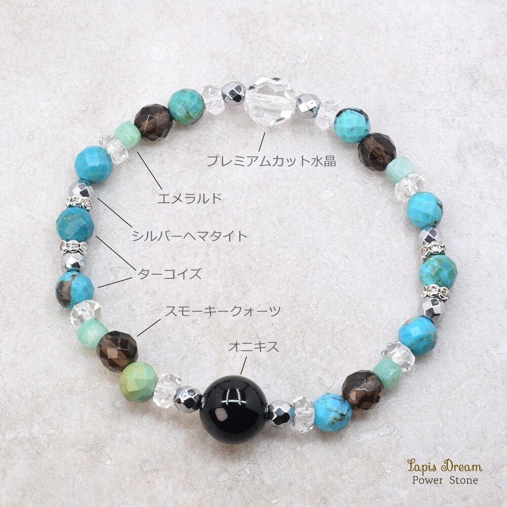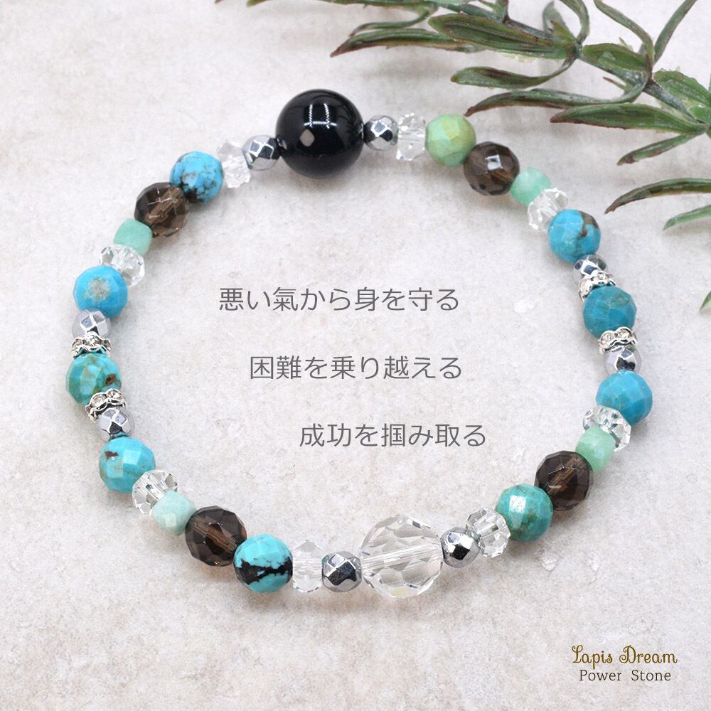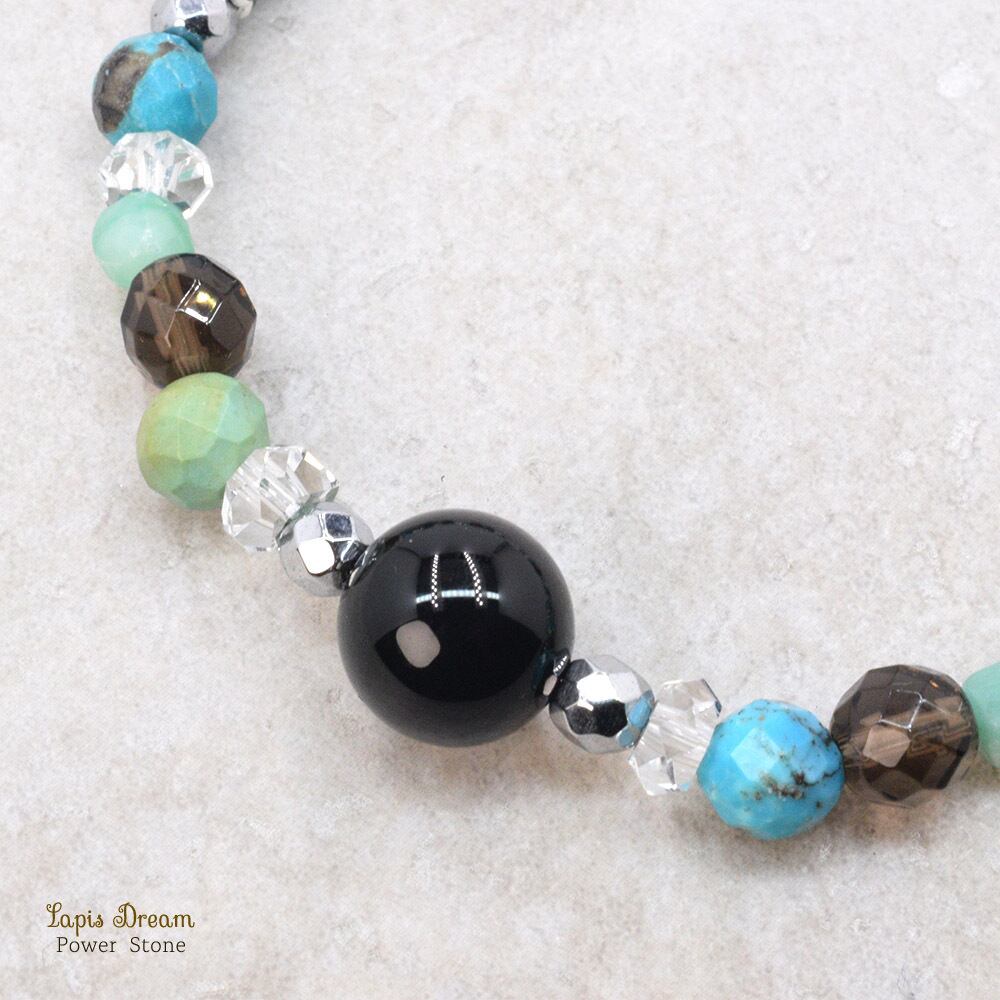 ◆悪い気を断ち切り、本来の自分を取り戻すお守り ◆ オニキス、ターコイズのパワーストーン ブレスレット