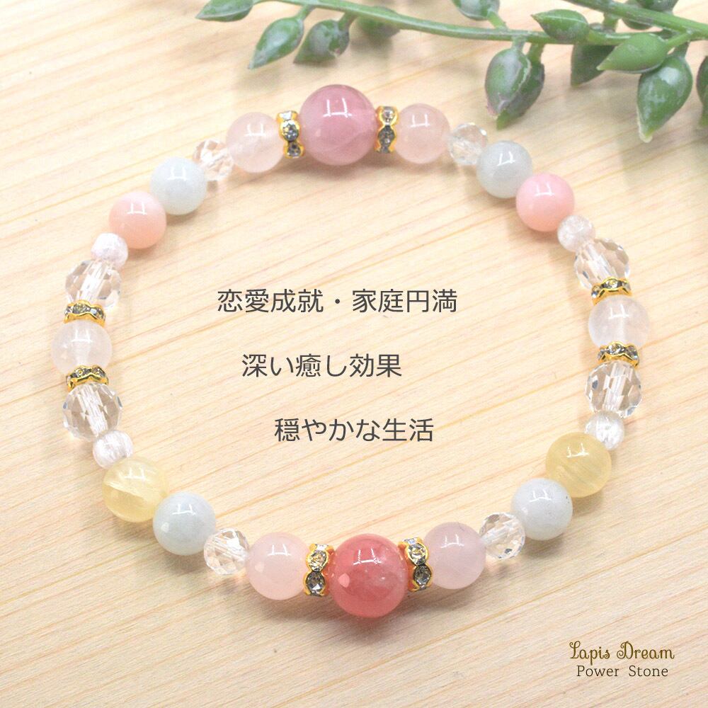 など、恋愛がうまく行き、幸せで穏やかな生活を送りたい”あなた”に身に着けて頂きたいパワーストーン ブレスレットです。