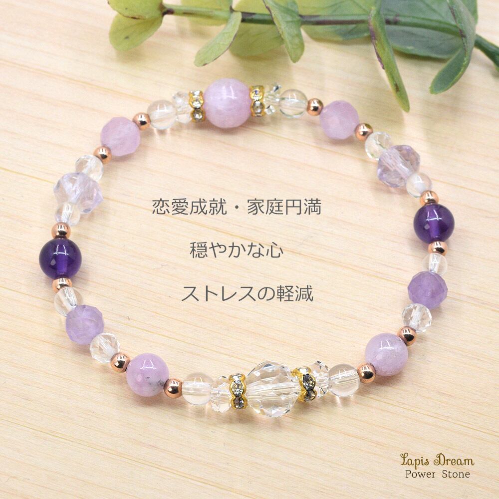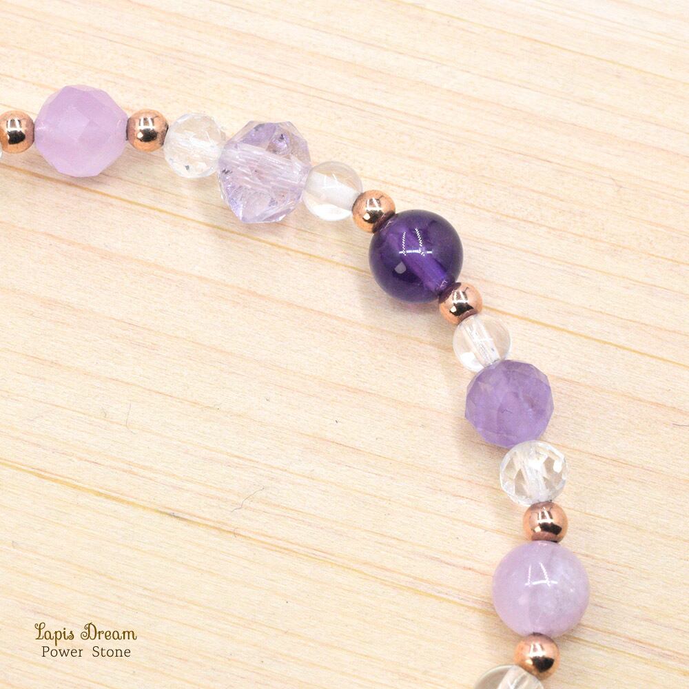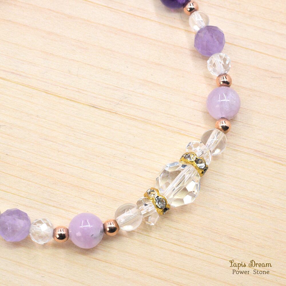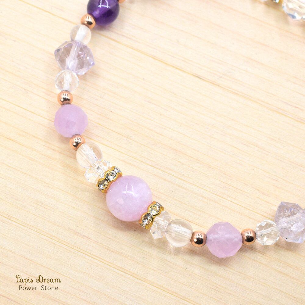 愛の守護石。心を優しく穏やかにしてくれるお守り | アメジスト、クンツァイトのパワーストーン ブレスレット