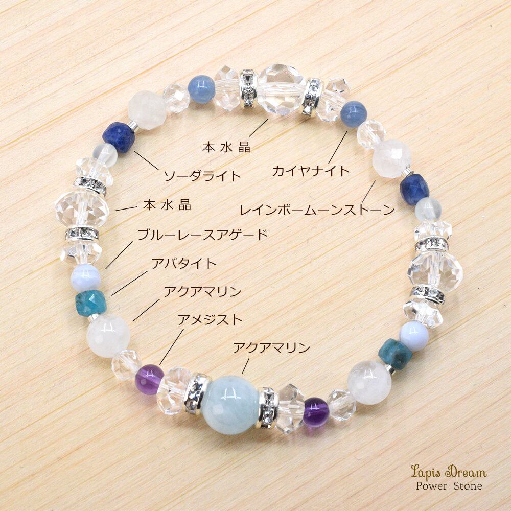 心を穏やかにして幸福感を高めるお守り | アクアマリン、レインボームーンストーンのパワーストーン ブレスレット