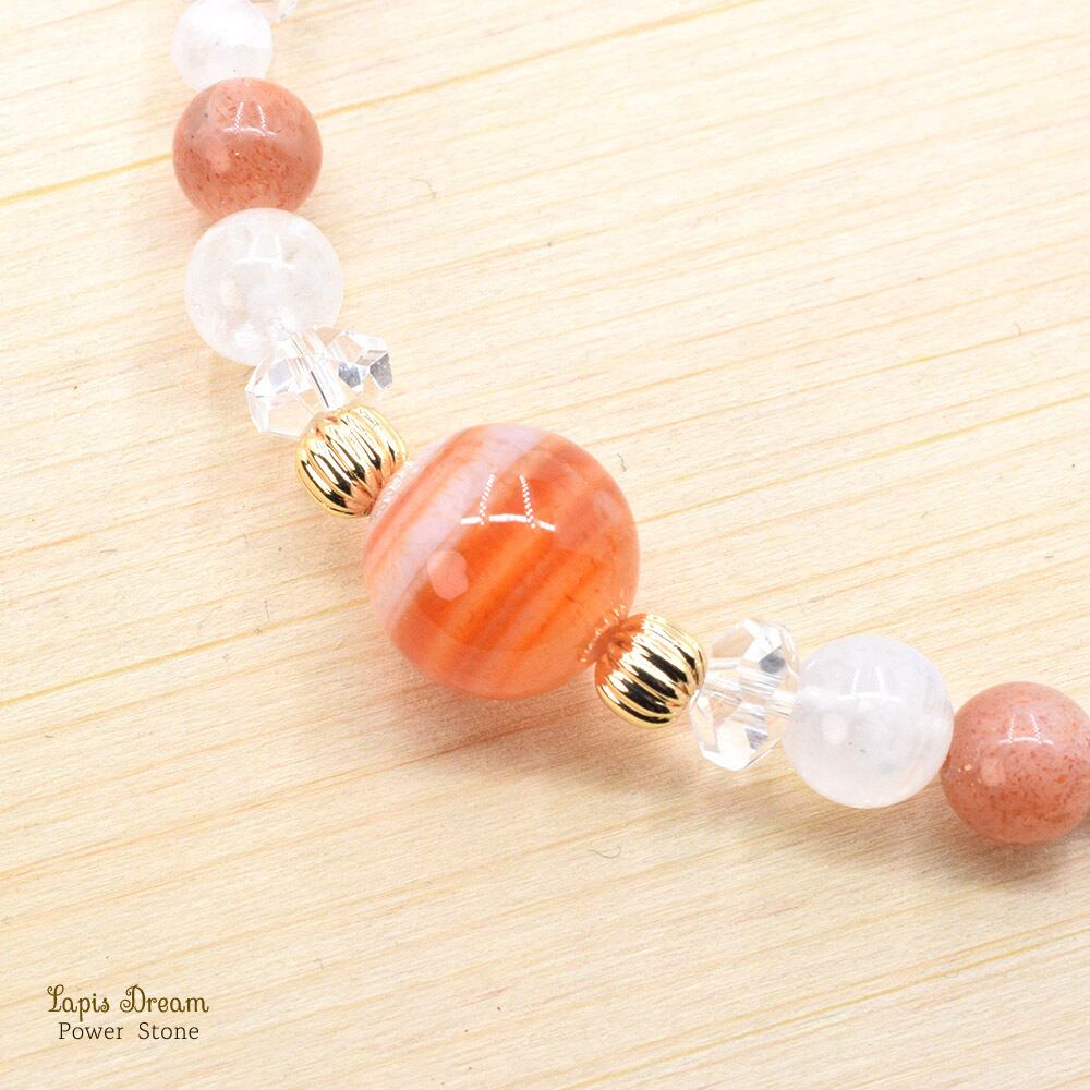 そんなサードオニキスを主役に、「平穏な生活を送る」効果があるオレンジムーンストーン。