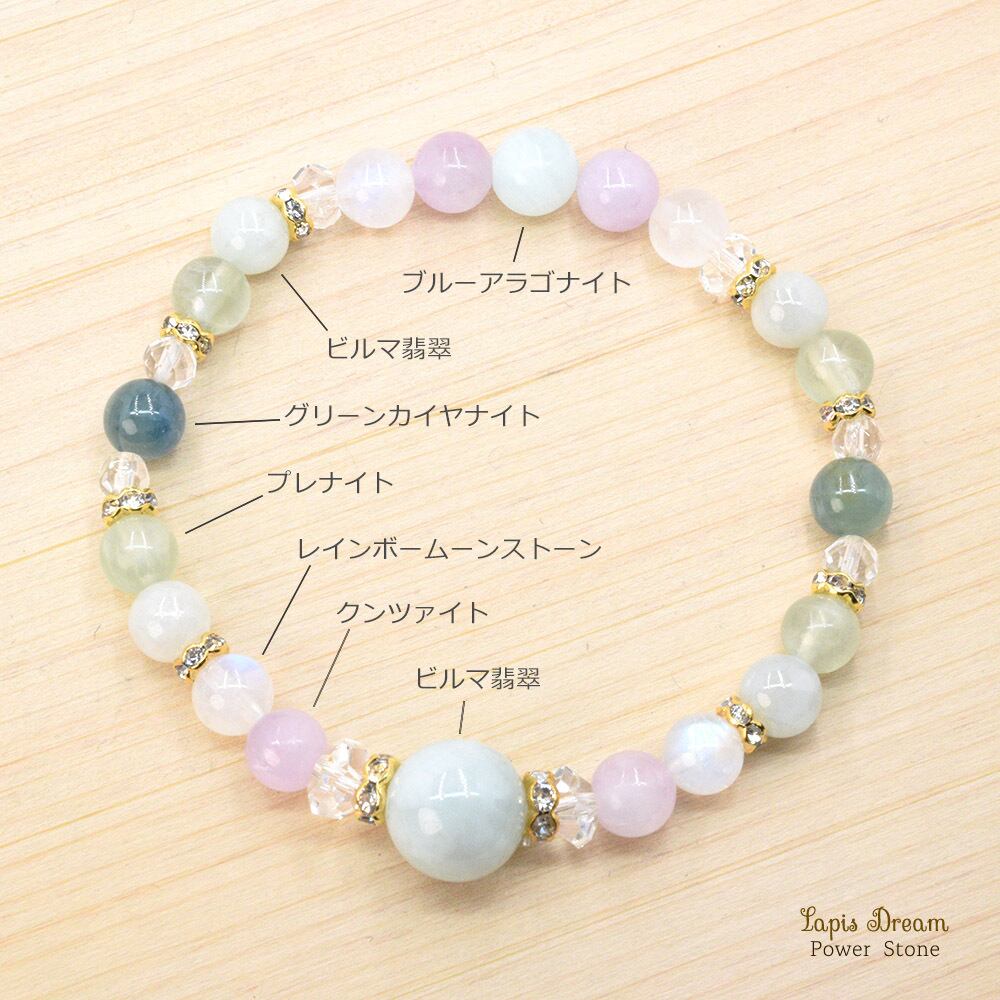 幸せな未来が訪れるお守り | ビルマ翡翠、クンツァイトのパワーストーン ブレスレット